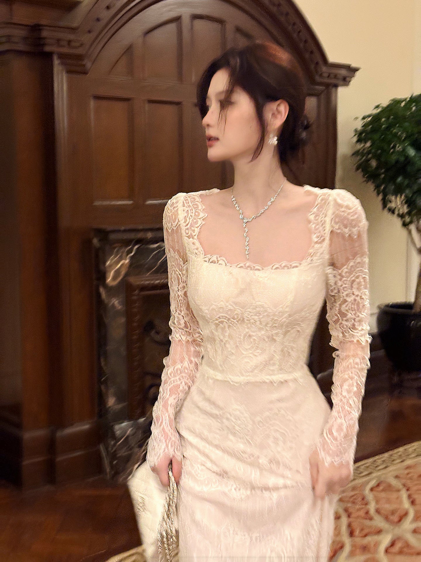 Lace Long-sleeved Square-neck Birthday Dress Mermaid Formal Dress L10